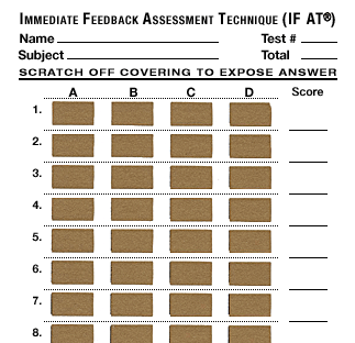 Finally, I would like to mention a product that my colleagues and I use once in a while. They are scratch-off multiple choice sheets. The name of the product is Immediate Feedback Assessment Technique, (“IF-AT”).