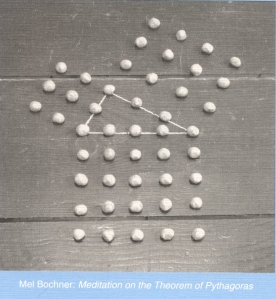 This image illustrating the Pythagorean Theorem was created by the artist Mel Bochner. It appears on the cover of the January 2009 issue of the College Mathematics Journal.