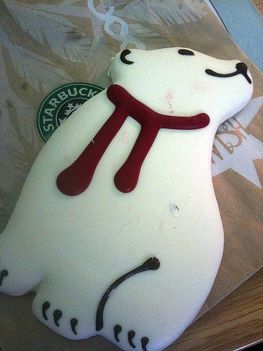 When I was in Starbucks the other day my eyes were drawn to the cookie display, for what did I see, but a row of cookies all decorated with ‘s! Upon closer inspection I discovered, to my disappointment, that it was not the Greek letter, but the red scarf of a polar bear.