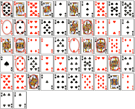 1 (king), 2 (10), 3 (king), 4 (2), 5 (jack), 6 (3), 7 (9), 8 (9), 9 (10), 10 (ace).