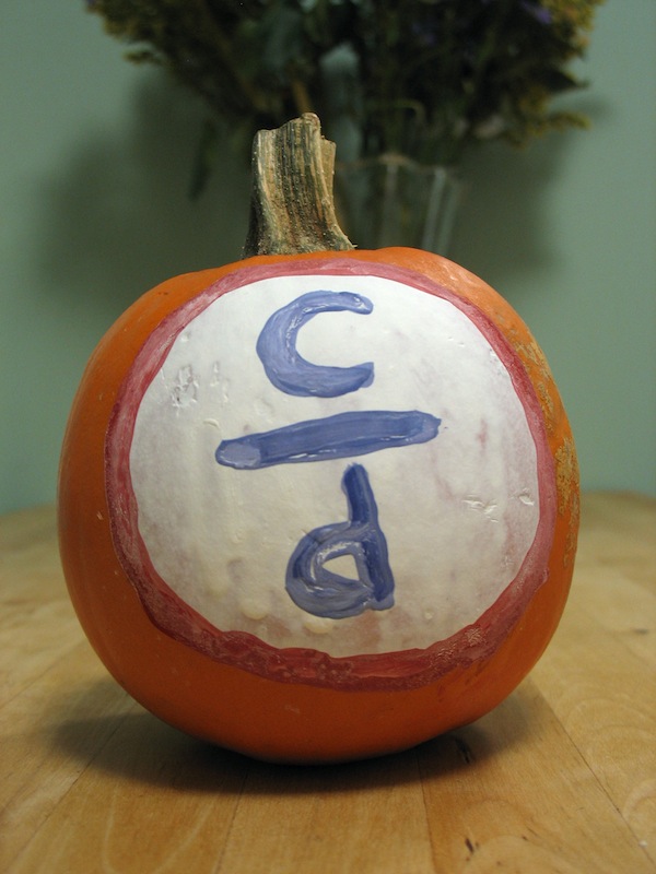 Humor, Math Pumpkin pi Posted by Dave Richeson on October 28, 2010October 28, 2010 My kids and I painted and carved pumpkins last night. And, yes, we made a pumpkin pi. Share this: Click to share on X (Opens in new window) X Click to share on Facebook (Opens in new window) Facebook Click to share on Reddit (Opens in new window) Reddit Click to email a link to a friend (Opens in new window) Email Click to print (Opens in new window) Print Like Loading... Related