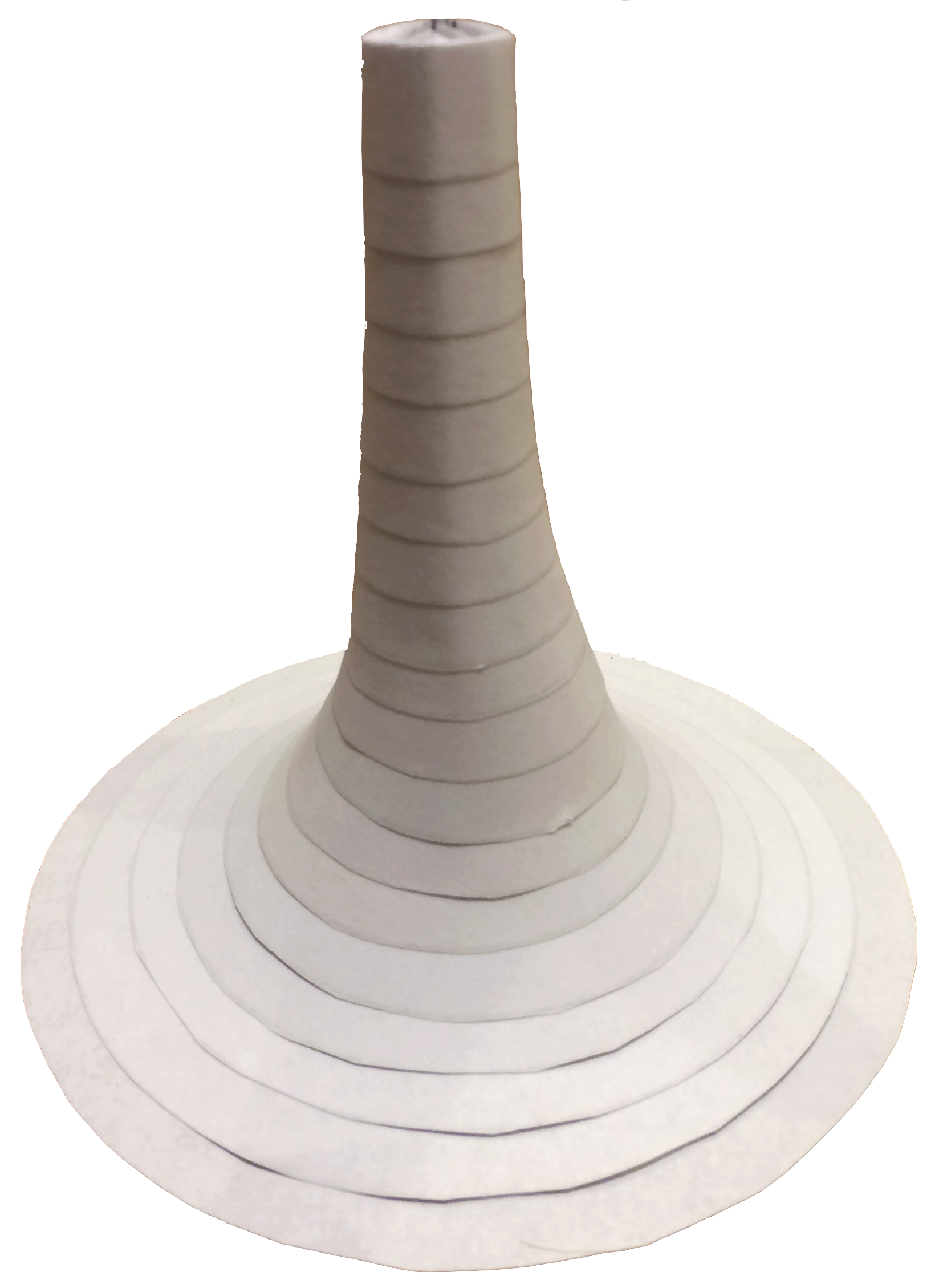 My gift was a set of instructions and templates for making Gabriel’s horn out of paper cones. Gabriel’s horn is the surface obtained by revolving the curve